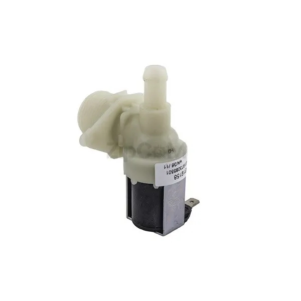 Электромагнитный впускной (заливной, наливной) клапан подачи воды для стиральных машин Whirlpool 481228128393. Одинарный выход под 90° относительно входа. Диаметр соска 10,5 мм.
